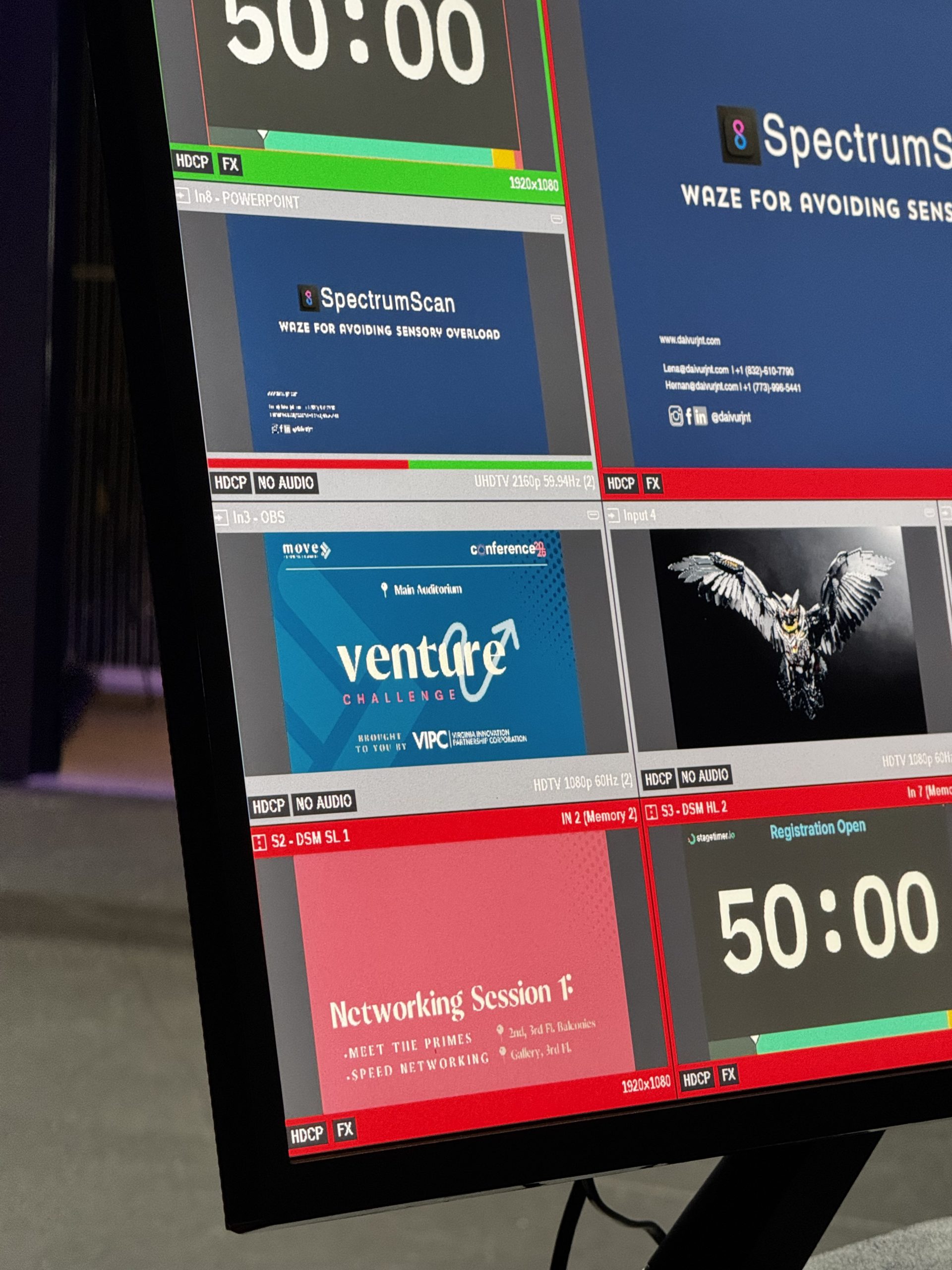 Every single thing was humming wonderfully. The Aquilon switcher they were using costs $145k. That’s not flex, that’s bulletproof 4K that just works (so many inputs!). Proper networking. Proper wiring. Everything labeled. Everything ready. When they needed to switch from one thing to another, they had the technical capability to do it instantly. The crew was excellent. When I mentioned making global announcements in the hall, they set up a “ding” button for me on the fly using Bitfocus Companion. Just like that. That’s the kind of competency that makes you better at your job.